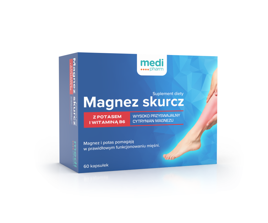 Magnez Skurcz z potasem i witaminą B6 to suplement diety zawierający w swoim składzie magnez, potas oraz witaminę B6.