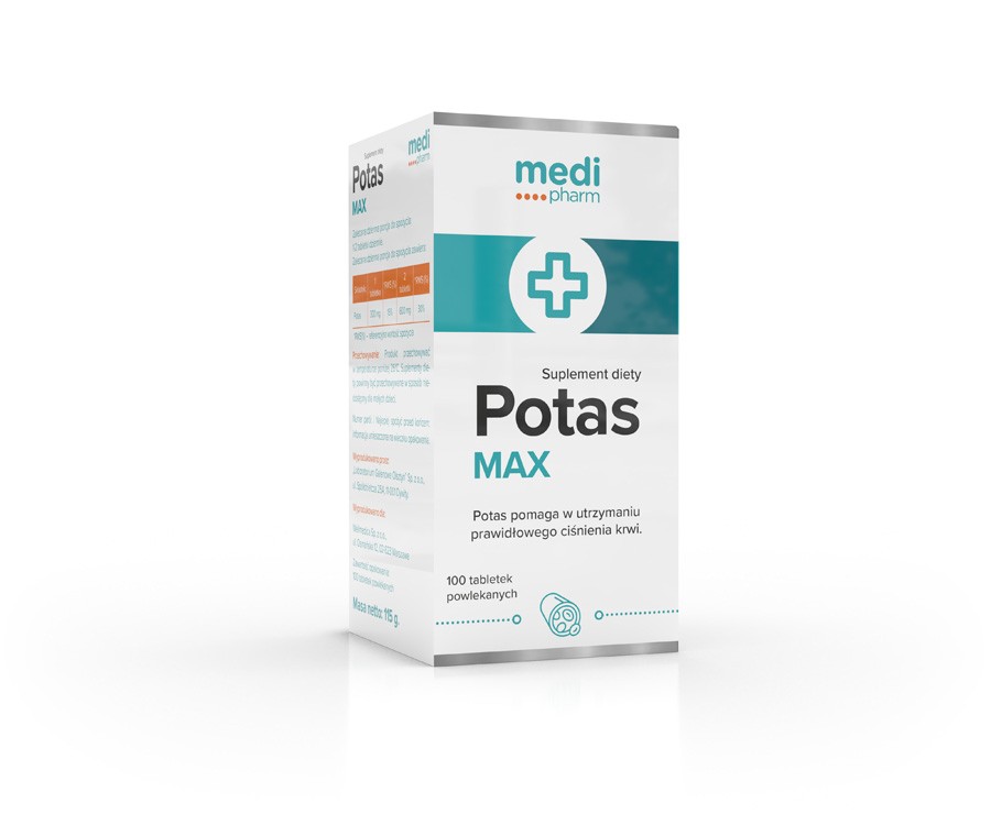 Potas Max to suplement diety zawierający w swym składzie potas. Potas pomaga w utrzymaniu prawidłowego ciśnienia krwi oraz w prawidłowym funkcjonowaniu mięśni.